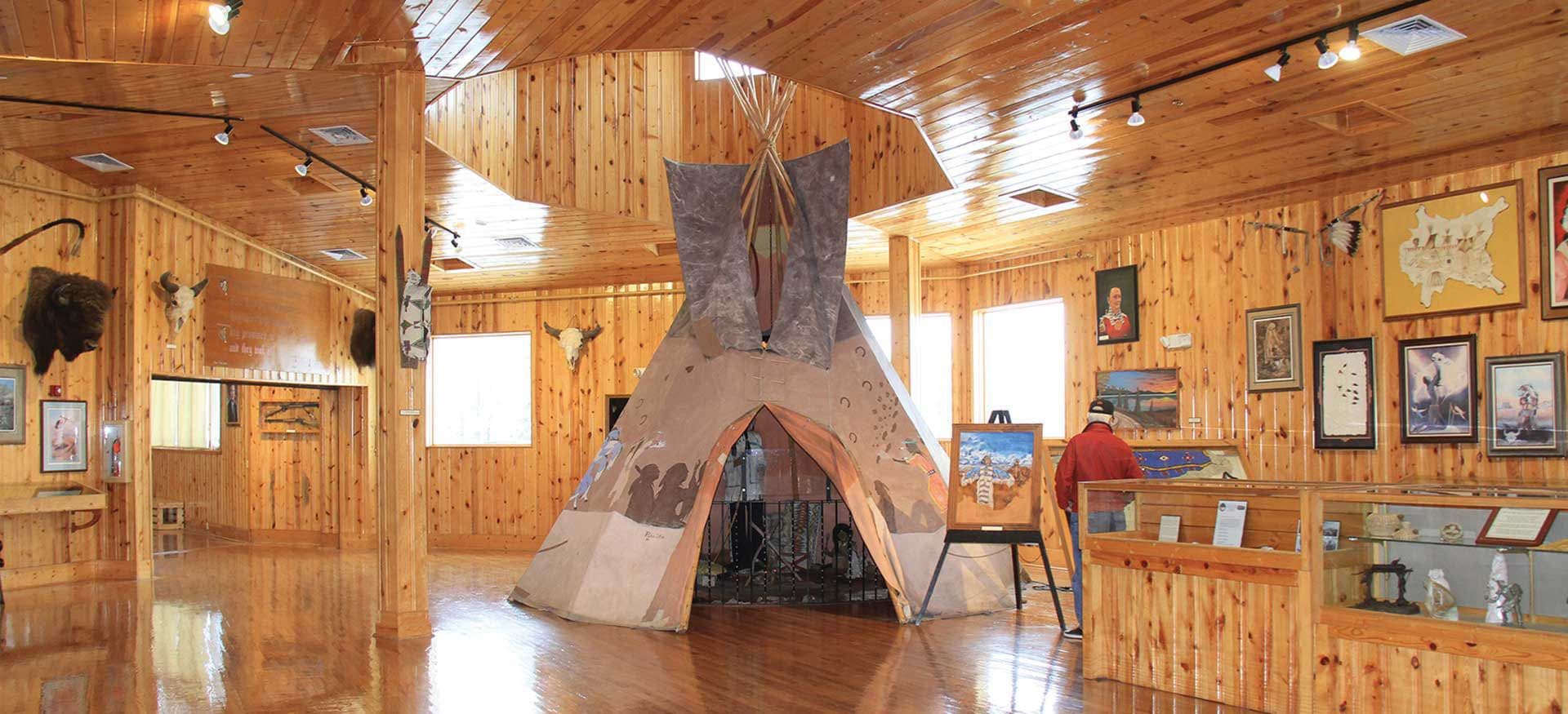 Well-known Oglala Lakota artist Orville Francis Salway (1923 -2005), or Paha Ska as he was named by Ben Black Elk, was born near White Clay, Nebraska, and lived most of his life in the Black Hills area, starting in Rapid City and later moving to Keystone where he sold his artwork and posed for pictures in traditional regalia. The colorful images on the Paha Ska tipi depict the intricate vision of Lakota Holy Man, Nicholas Black Elk. In many ways, Paha Ska utilizes this piece of art to interpret, preserve, and share an important story of Black Elk’s spiritual vision. In addition to the tipi, many of Paha Ska’s other art works are on display throughout THE INDIAN MUSEUM OF NORTH AMERICA® at Crazy Horse Memorial®.