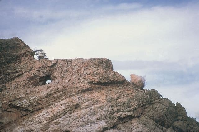 Blasting begins to create 20 foot horizontal benches (access roads) to the 219 foot Horse's Head. The Welcome Center is expanded, along with road access to the visitor center.
