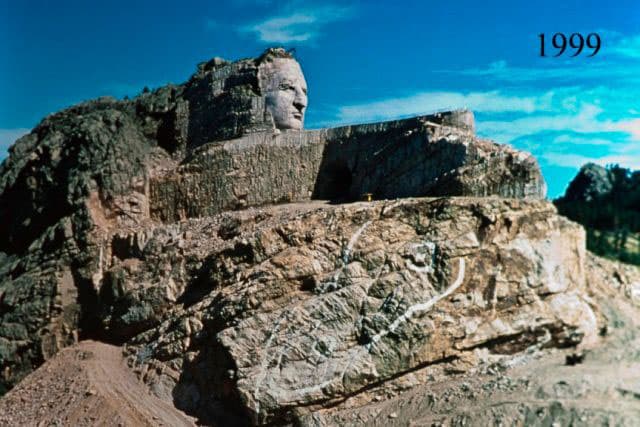 Work begins on carving Crazy Horse's Face. In five short years the Forehead, Eyes and most of the area under the Nose has been finished.